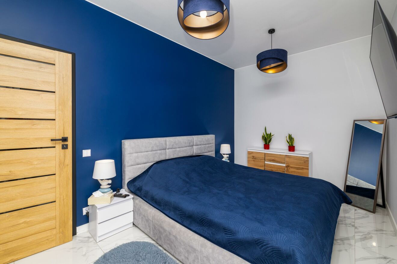 - Duża sypialnia z garderobą i wyjściem na taras.